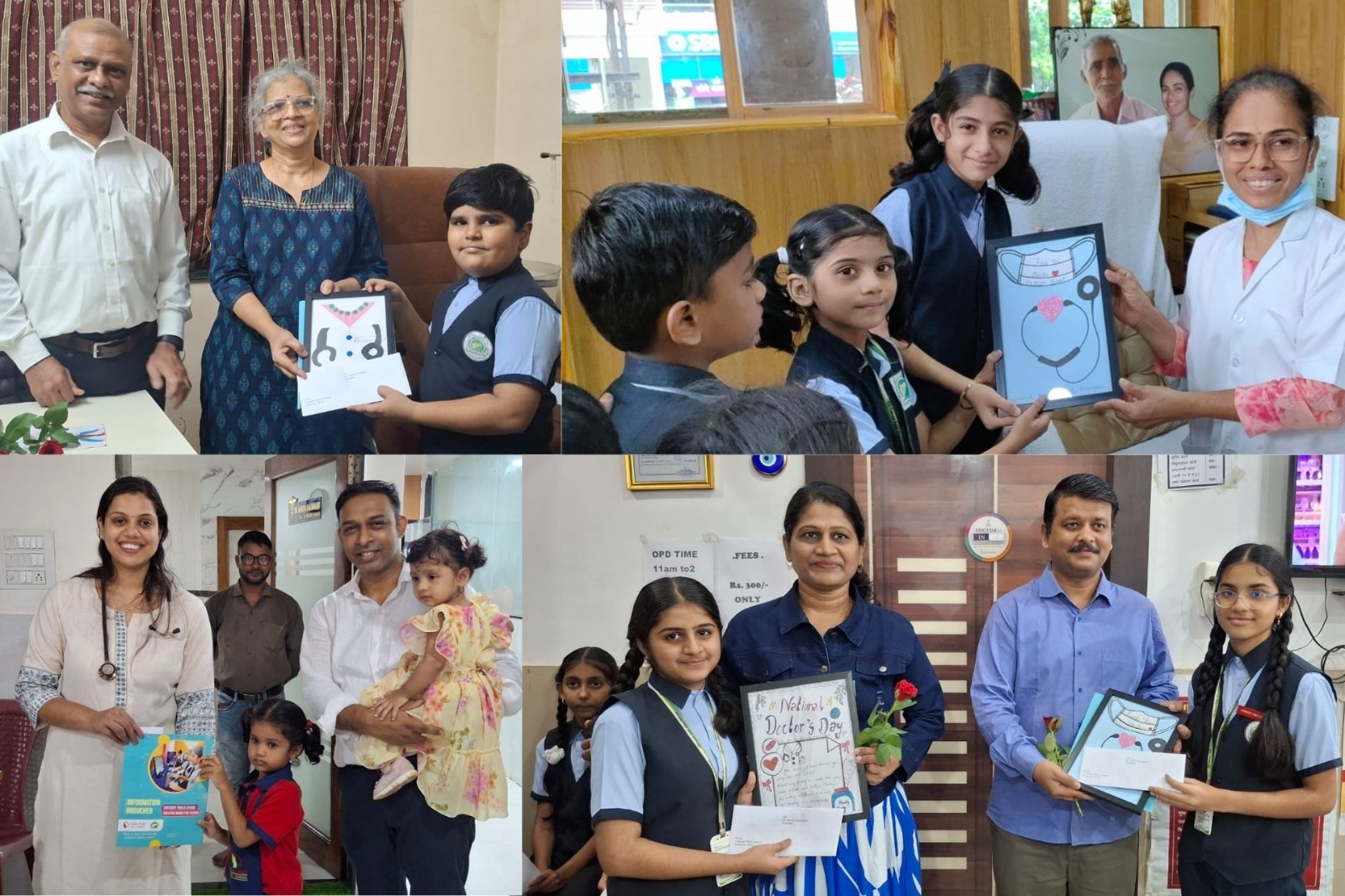 The event provided the students with an opportunity to meet and personally thank doctors who dedicate their lives to healing and helping others. Students, accompanied by their teachers, visited various clinics and presented handmade greeting cards, flowers, and potted plants as tokens of appreciation. In return, the doctors expressed their gratitude by gifting chocolates and small tokens to the children.