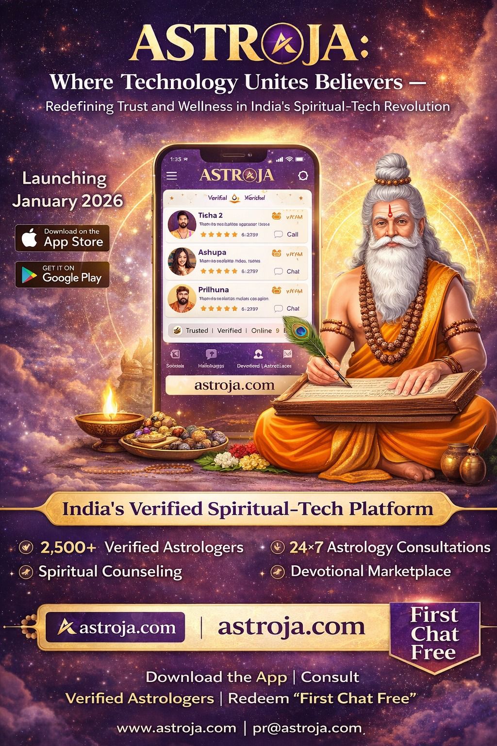 Guided by its foundational philosophy, “Where Technology Unites Believers,” ASTROJA leverages secure digital systems, AI-powered insights, and personalized guidance features to enhance—not replace—traditional spiritual practice and faith. Beginning January 2026, users will be able to download the ASTROJA mobile app, visit astroja.com, consult verified astrologers across India, and redeem a First Chat Free introductory offer.